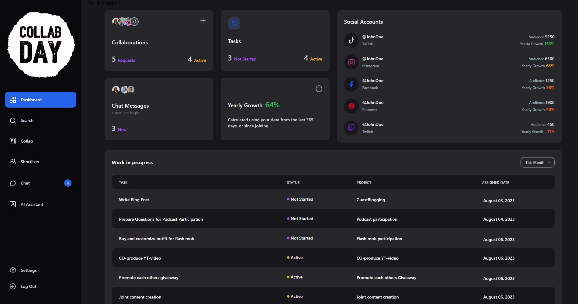 Influencer collaborationPlatform for handling your influencer collaborations. Under construction, but you can sign up to the waitinglist for early access.